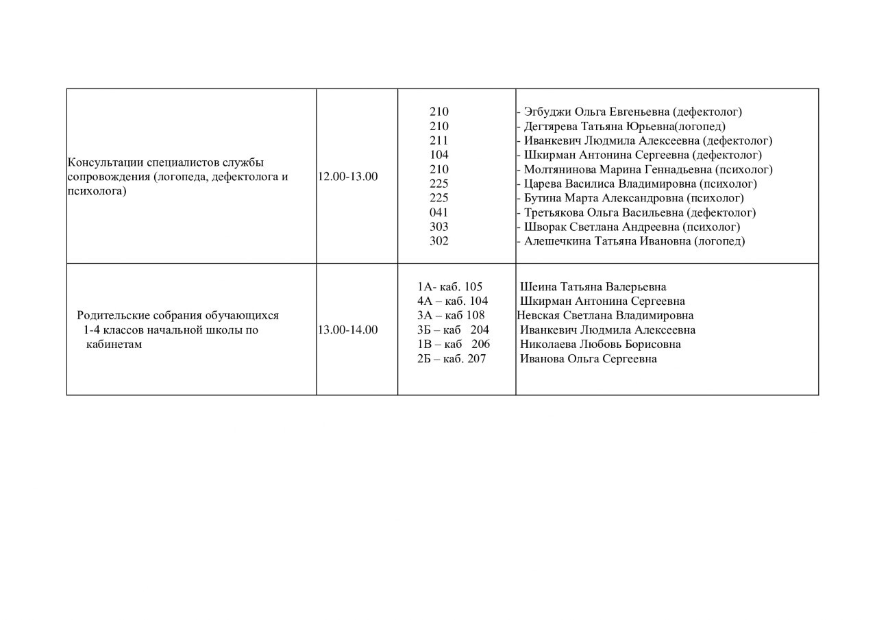 - Индивидуальные консультации службы сопровождения (психологи, логопеды) с 10:00